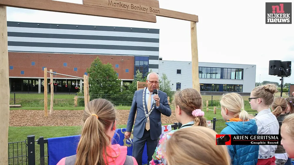 Vanaf de bouw van basisschool De Hoeksteen is er een initiatief van de school om een gedeelte van het braakliggende terrein naast de school in bruikleen te nemen als 'Ontdektuin'. Daarvoor zijn afspraken gemaakt en afgelopen maandag is deze tuin geopend. De uitstraling van de Monkey Bonkey Baan is in een natuurlijke sfeer ontworpen, zodat deze heel mooi aansluit op de ‘Ontdektuin’. Daarnaast is het toestel 'geknipt' in meerdere losse toestellen zodat een speelterrein is ontstaan voor jong en oud.