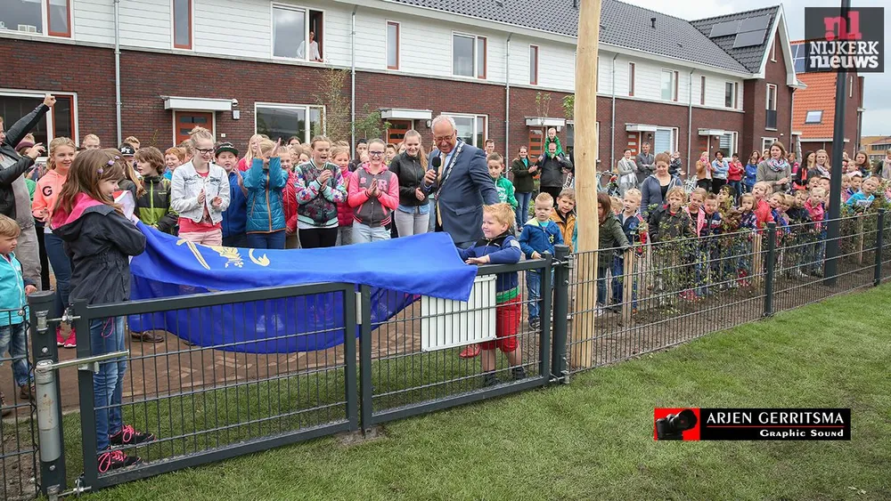 De speeltuin naast de Hoeksteen aan de Zijdevlinder is het resultaat van een beslissing van dejeugdgemeenteraad eerder dit jaar. Daarom de belangstelling vanuit het stadhuis. Het wegtrekken van de gemeentevlag was de openingshandeling, waarna leerlingen van de Prins Willem Alexanderschool er vrolijk op los dansten. Het waren deze leerlingen, die het voorstel in de jeugdgemeenteraad succesvol hadden ingebracht. Daarna demonstreerden leerlingen van de sportklas van het Corlaer College de verschillende toestellen en konden de kinderen er voor het eerst op en in spelen.