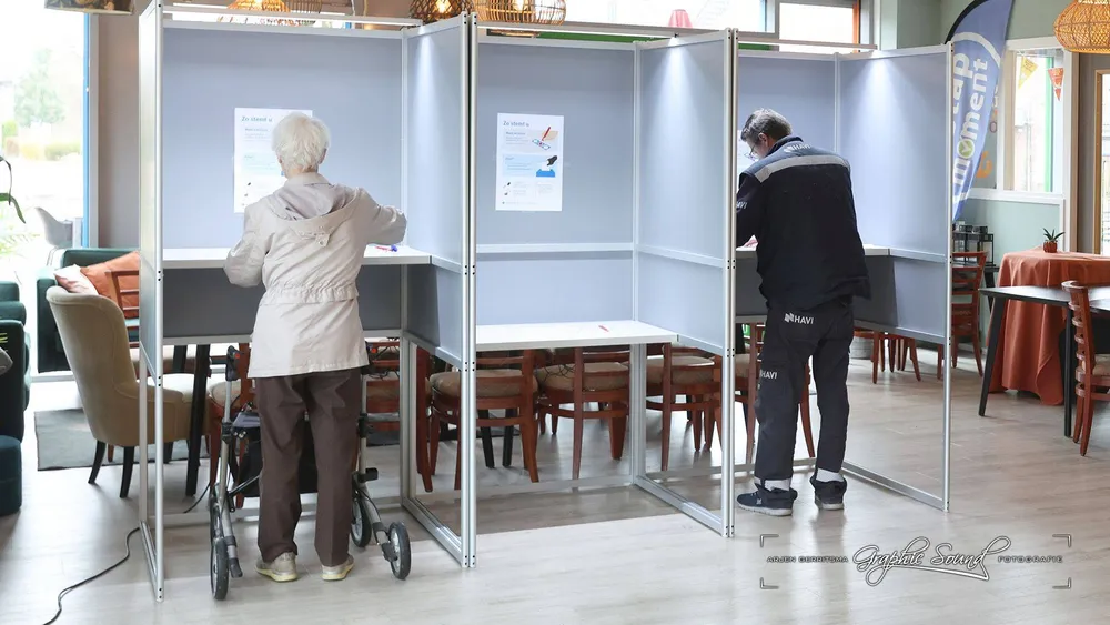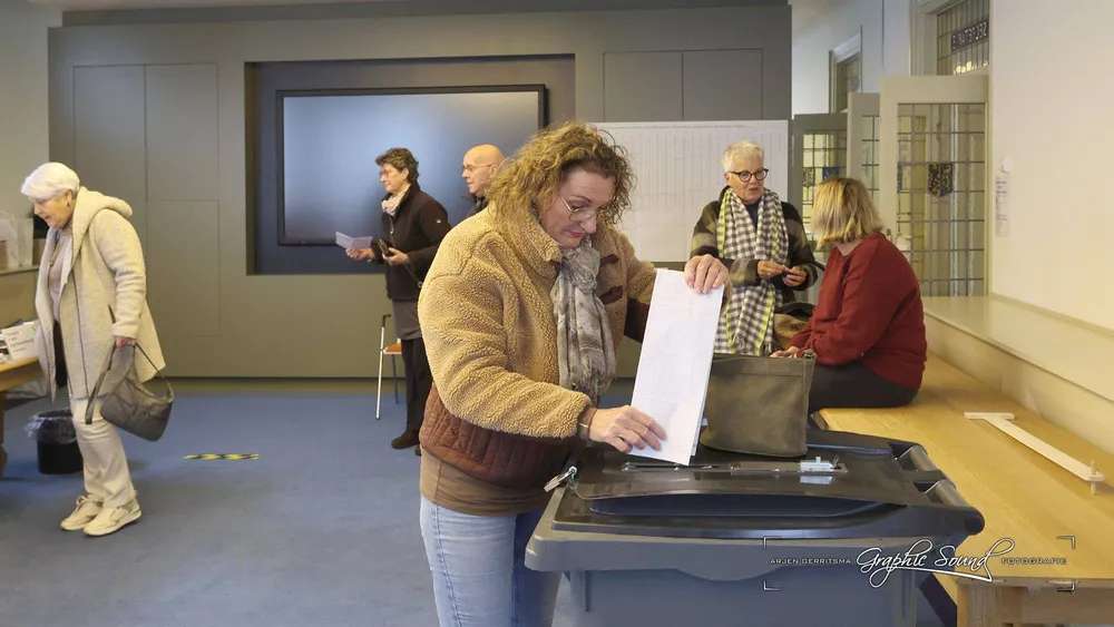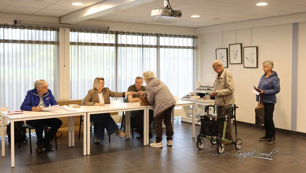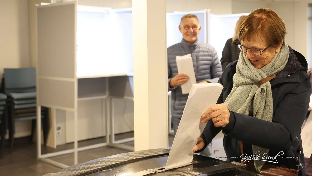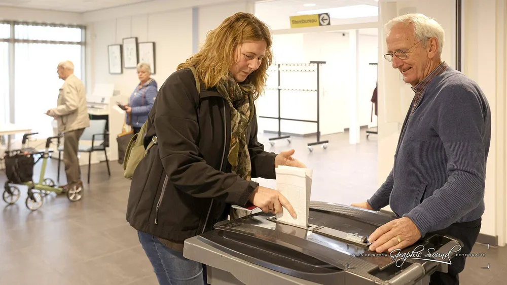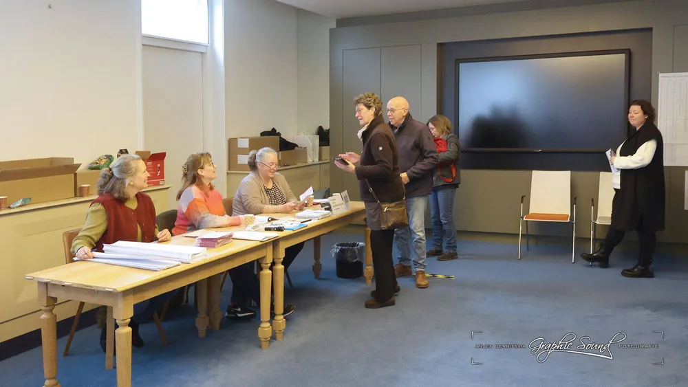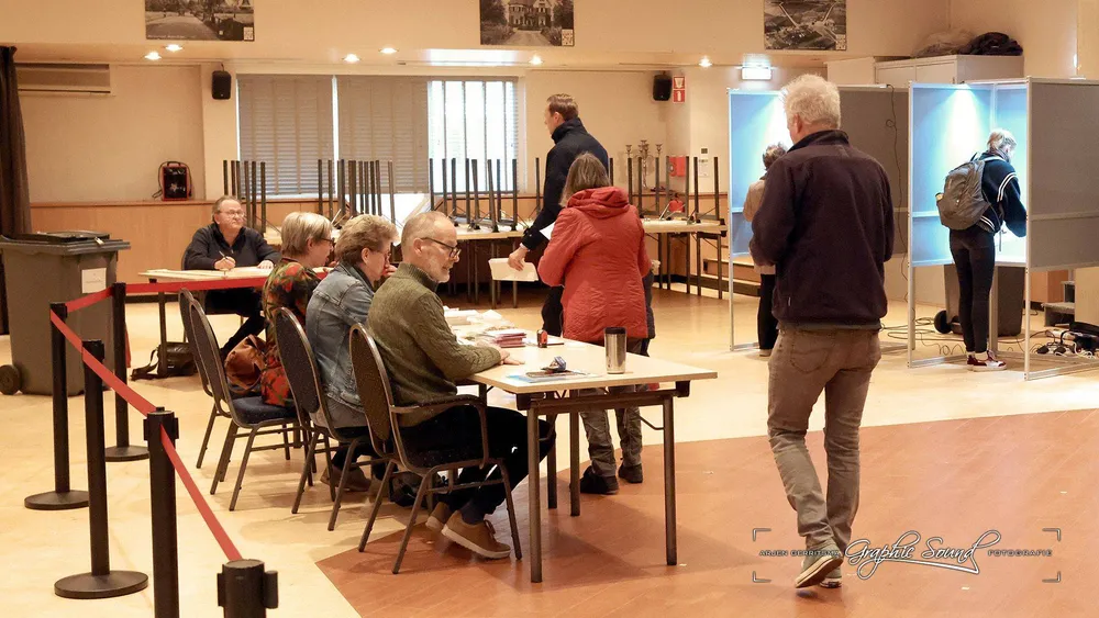 Arjen Gerritsma maakte een rondje langs de stembureaus. Hij begon in Hoevelaken en trof daar in De Stuw burgmeester Tinet de Jonge.