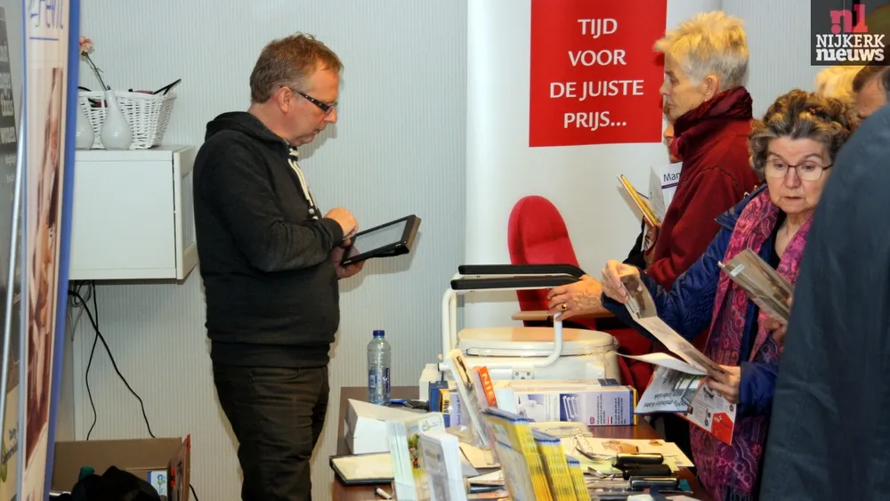 Mensen waren persoonlijk uitgenodigd om zicht op de informatiebijeenkomst “Woon Bewust” te laten voorlichten over onder andere woningaanpassingen, energiebesparing en gebruik van thuistechnologie/domotica. Het was dan ook goed druk in “De Schakel”.