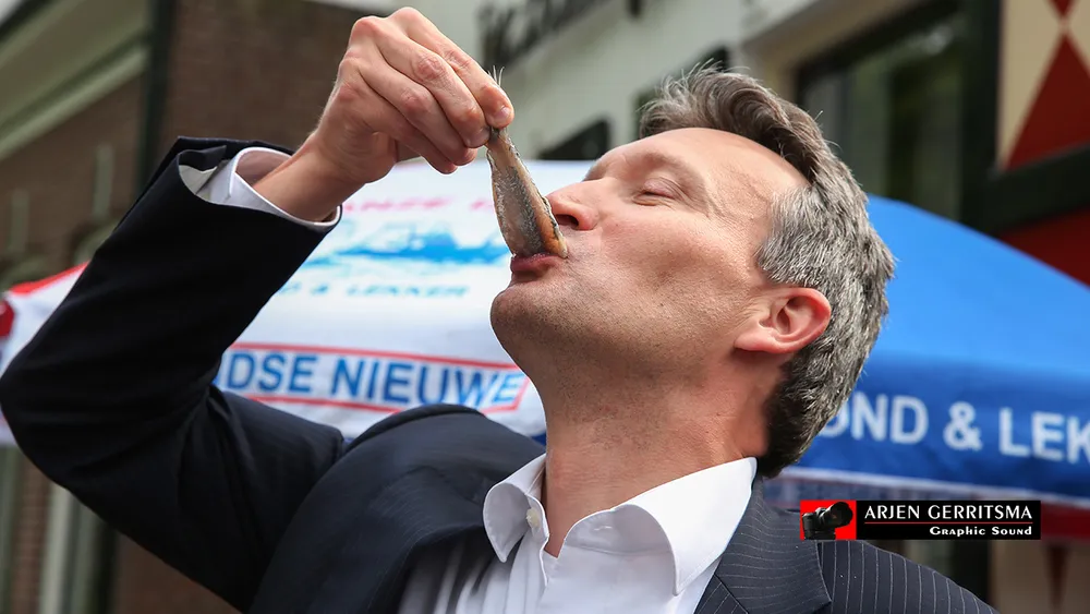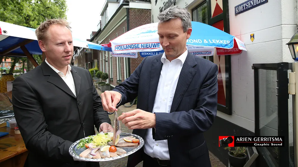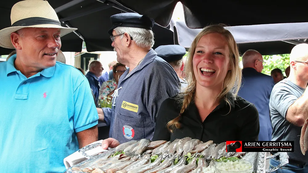 Notaris Rik van der Weij van Beens, Veldhuizen en Van de Castel Notarissen mocht de eerste lekkernij haring proeven. Verder was het Nijkerkse Zeemanskoor aanwezig en trad ook nog een doedelzakspeler op. Heerlijk was de meest gehoorde omschrijving Ely Hackmann en Arjen Gerritsma hapten er ook een paar weg en maakten tussendoor foto's 9n de fotoserie) en deze impressie.