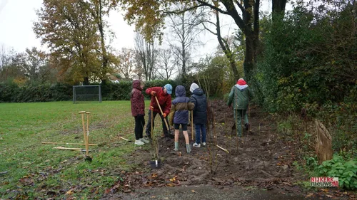 Maar toen de leerlingen van groep 6 en 7 van de Hoeve wat later aankwamen, klaarde het weer langzaam op. Maar goed ook, want ze kwamen voor de jaarlijkse Nationale Boomfeestdag, de aftrap van het plantseizoen voor bomen. De kinderen gingen aan de slag met het planten van planten en bomen. Die zijn door de Lions Hoevelaken betaald, want nog wat geld over van