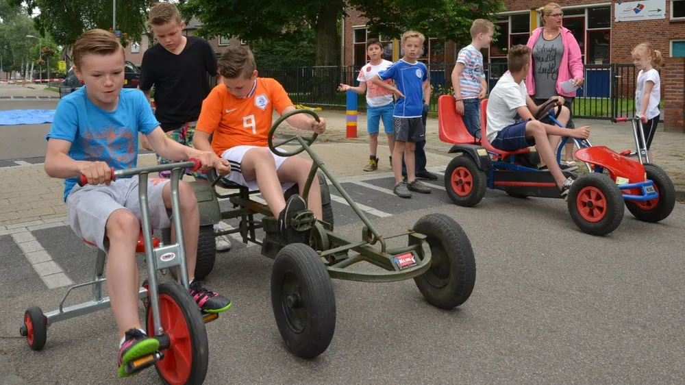 Delen van de Winkelmanstraat en de Van Noortstraat waren afgesloten om de kinderen de ruimte te geven om op straat te kunnen spelen. Bij de Van Rootselaarschool was er een stormbaan, een skelterparcours en kinderen konden een auto beschilderen. De Johannes Calvijnschool had zelfs de brandweer en de politie uitgenodigd. Brandweerman HenkJan Stitselaar demonstreerde de brandspuit en politieagent Cees Boone liet de kinderen ervaren hoe het is met een kogelvrij vest rond te lopen.