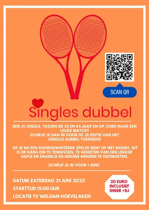 TV Weldam nodigt met veel plezier alle singles van Midden-Nederland uit om deel te nemen aan dit unieke toernooi.