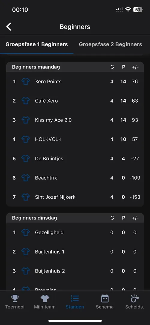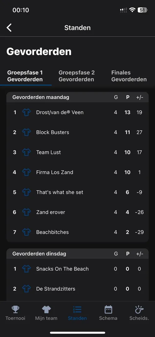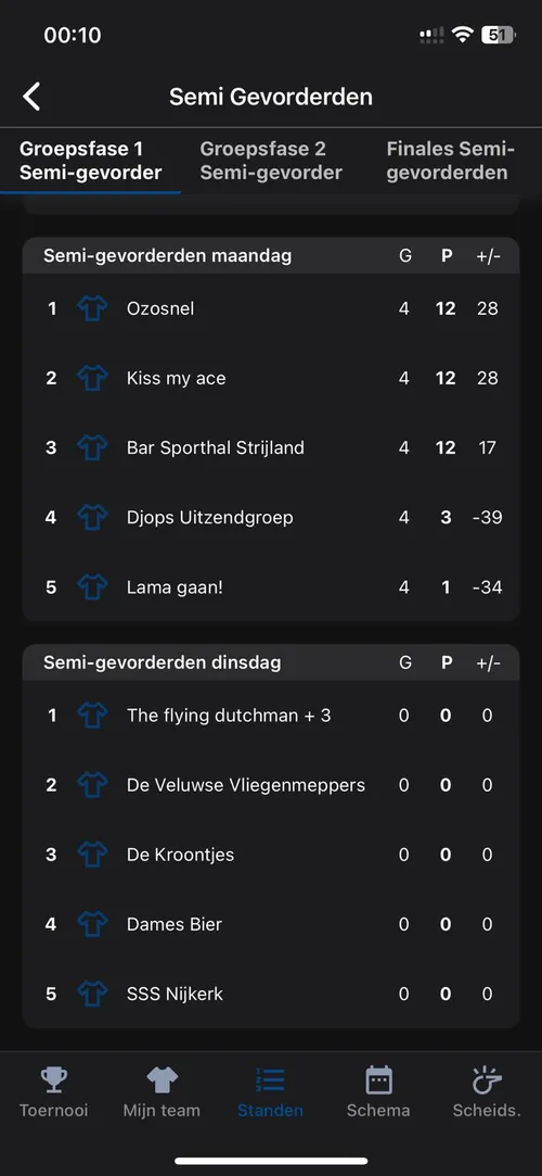 Nadat het laatste punt gescoord was, zagen de verschillende standen er zo uti.
