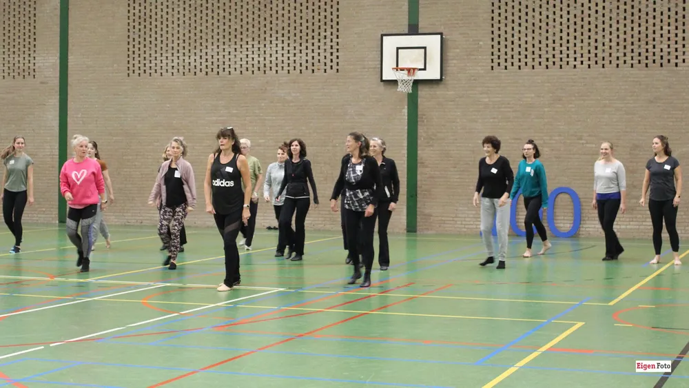 Velen hadden de datum al rood omcirkeld en waren vol goede moed naar de sporthal gekomen. En niet alleen voor de gezelligheid. Bijna iedereen kwam in sportkleding. Er werd daarna ook fanatiek meegedaan met de lessen die gegeven werden.