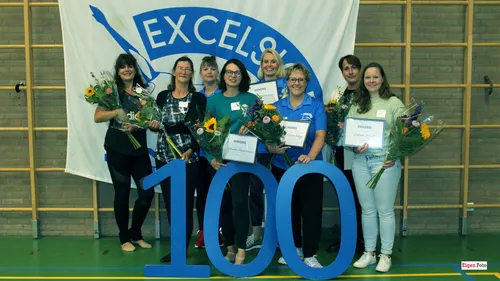 Marieke Duits en Marieke den Uijl (laatstgenoemde kon er deze avond niet bij zijn. Zij werd onderscheiden op haar eigen les), werden bedankt voor hun inzet, zij zijn niet alleen meer dan 25 jaar lid, de beide Mariekes geven ook al jaren succesvol les bij Excelsior.