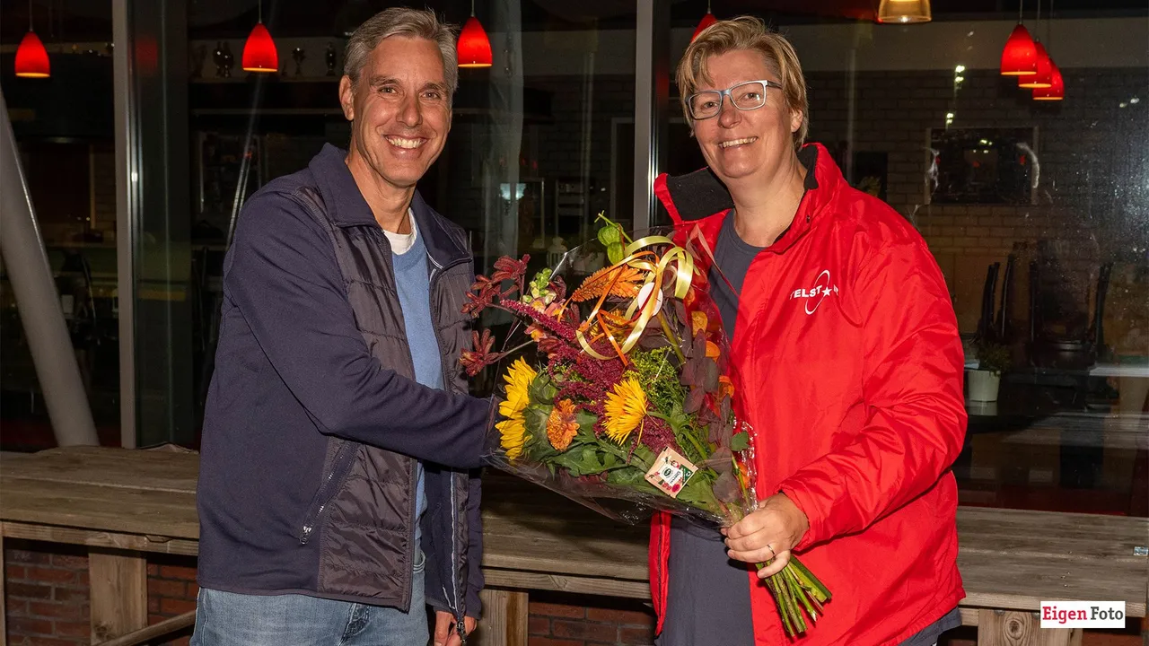 Peter Jakobs, voorzitter van de technische commissie, bekleedde Heleen met de officiële Telstar coach jas. Ook kreeg ze een bos bloemen.