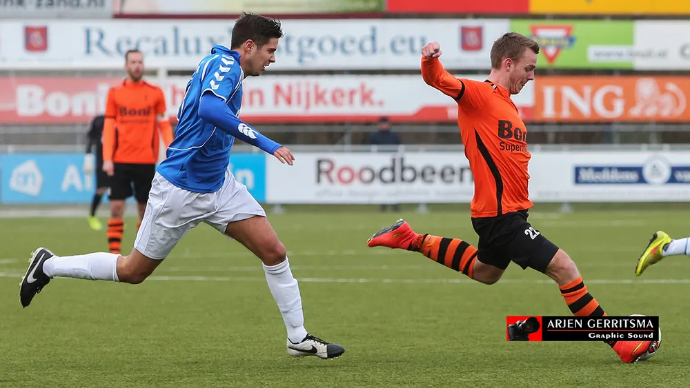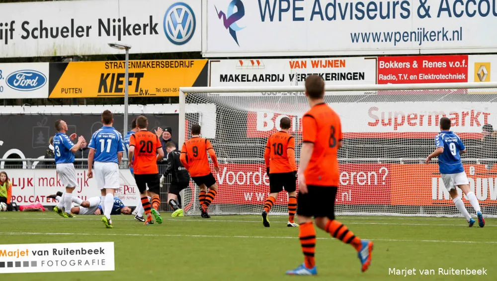 Het was een wedstrijd die alle kanten op kon. Vlak voordat Krux gelijk maakte, miste Peters nog een levensgrote kans. Na de 1-1 raakte Nijkerk de paal zelfs nog.