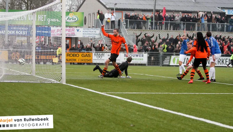 Negen kansen kreeg Sparta Nijkerk dit seizoen om thuis een wedstrijd te winnen. Vanmiddag slaagde de ploeg van trainer Simon Ouaali daar tegen Scheveningen opnieuw niet in: 1-1, aldus het Eindhovens Dagblad. “Er rust een vloek op”, zei Ouaali. Kansen op de gelijkmaker waren er in de slotfase maar Tim Krux en Sebastian van Kammen kregen de bal niet achter keeper Tom Boks. In de extra tijd was het dan toch nog raak: Frank Tervoert zag zijn inzet in eerste instantie nog gekeerd worden, maar gelegenheidsaanvoerder Krux(aanvoerder Tim Muller was geschorst) was er al de kippen bij om de gelijkmaker binnen te schieten(1-1).