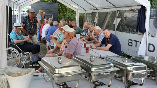 Na afloop stonden hapje, drankje en een buffet voor de mannen klaar.