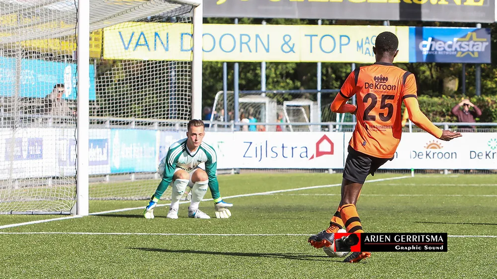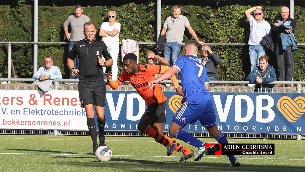Deze druk resulteerde in de 17e minuut in een eigen doelpunt van de Duno D. linksback Ahmed Lak tikte de bal heel netjes langs zijn eigen goalie 1-0. vlak voor rust joeg aanvoerder Donny van der Wal de bal met een vlammend schot met een vlammend schot de goal in.