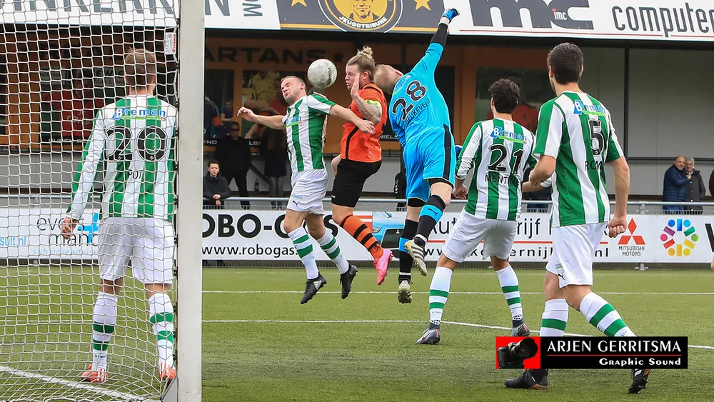Al in de tweede minuut werd Fabian Bouwman op de proef gesteld. Hij pakte een vrije trap van de Genemuiders, aan vertrouwen schort het bij hem in ieder geval niet. In de eerste helft zagen we een gelijkwaardige pot. In de 30e minuut was de beste kans tot dan toe voor Jesse Buitenhuis, de bal ging maar net over. In de 37e nog een fraaie redding van Fabian Bouwman op een inzet van Omar Kavak. Op het eind van de eerste helft had Jan Struijk nog de mogelijkheid de score te openen voor de Spartanen, op luttele meters voor de goal kopte hij de bal hoog over.