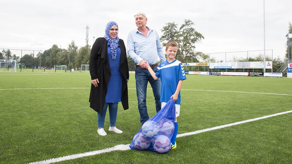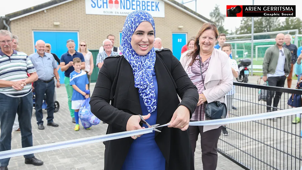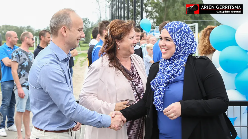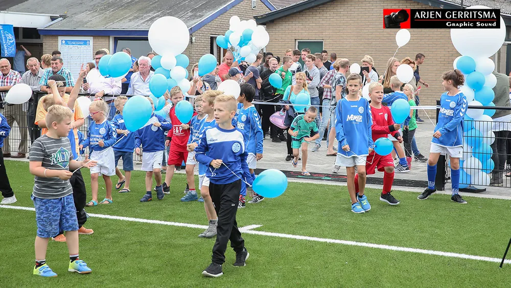 De opening werd verricht door wethouder Nadya Aboyaakoub-Akkouh, die vergezeld ging door wethouder Patricia van Loozen. Aboyaakoub, gekleed in de clubkleuren van Veensche Boys, knipte een lint door, waarna het nieuwe kunstgrasveld formeel kon worden overgedragen. Het hoofdveld is omgedoopt tot het Ekris-veld, omdat het automerk de sportclub uit Nijkerkerveen vijf jaar lang zal sponsoren. Daartoe is een gigantisch reclamebord aan de noordzijde van het veld geplaatst. Henk van Lindenberg van de Nijkerkse vestiging van Ekris was erbij aanwezig toen bij het bekend worden van de naam ‘Ekris-veld’ tientallen kinderen blauwwitte ballonnen oplieten. De gemeente Nijkerk heeft overigens niet alleen voor een nieuw kunstgrasveld gezorgd, ook ontving de club uit Nijkerkerveen nieuwe voetballen. Deze werden overhandigd aan Bob Bouw, speler van Veensche Boys JO9-1. Daarmee was de kous nog niet af voor de wethouder. Eerst werd de champagne nog ontkurkt in aanwezigheid van alle grote sponsoren van Veensche Boys en het gemeentebestuur. Daarna mochten wethouder Aboyaakoub en Van Lindenberg de eerste aftrap verrichten van de competitiewedstrijd tegen De Meern.