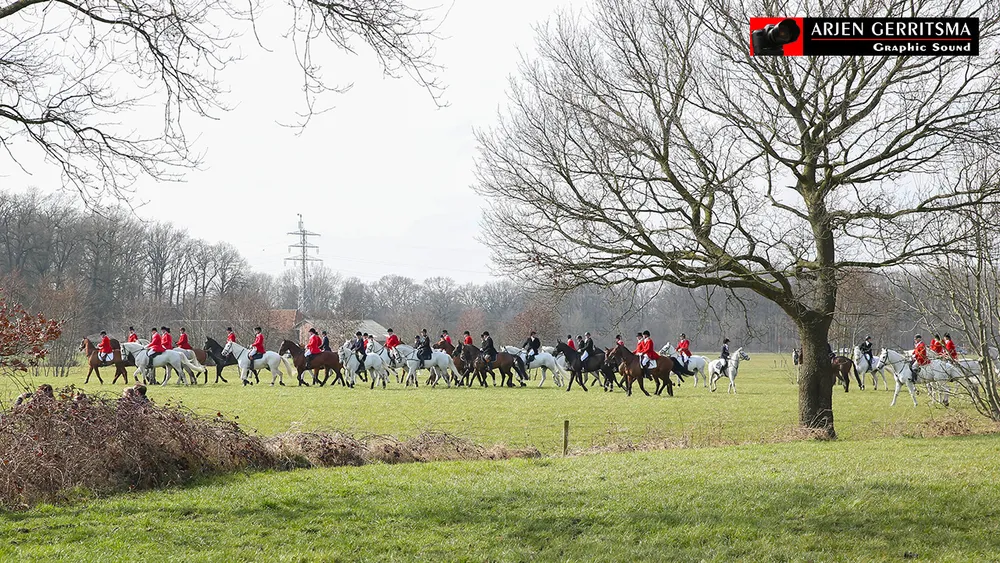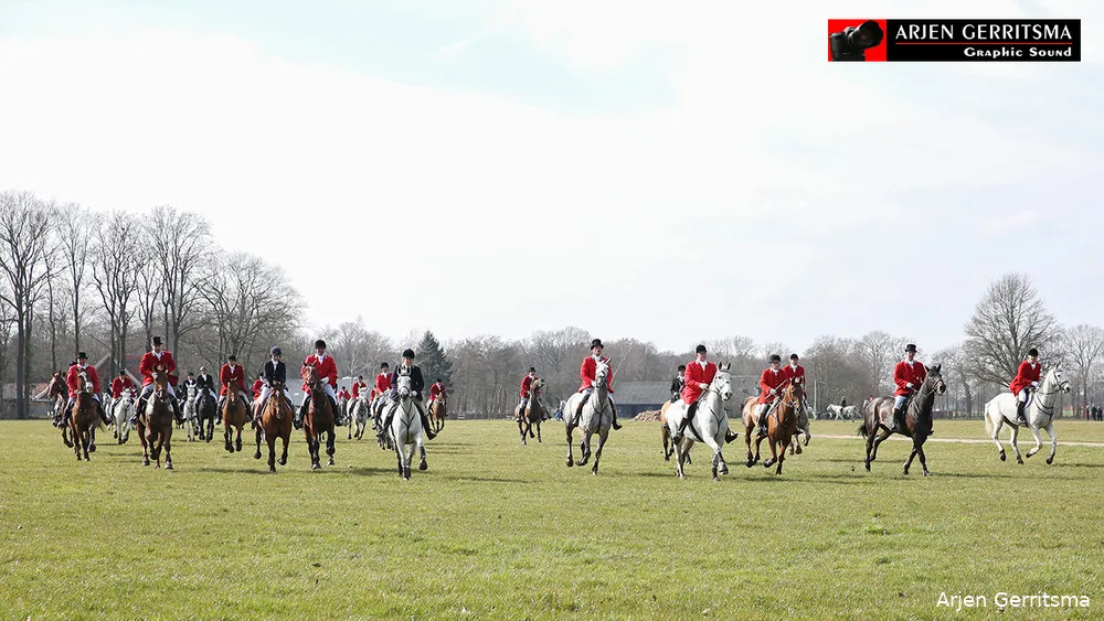 De tocht ging als altijd over de landerijen tussen Nijkerk en Putten, dankzij de toestemming van vele landeigenaren. Voor het als maar toenemend aantal toeschouwers aan het einde, bij de heg tegenover Salentein, was het deze editie wel extra lang wachten. De honden waren onderweg het spoor bijster geraakt, waardoor de ruiters langer onderweg waren. Het mocht de pret niet drukken.