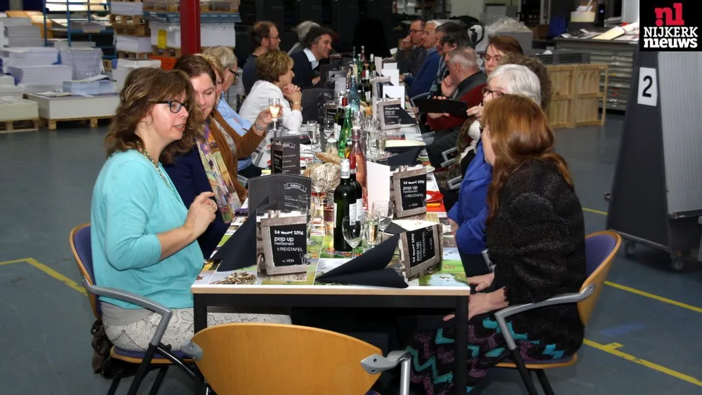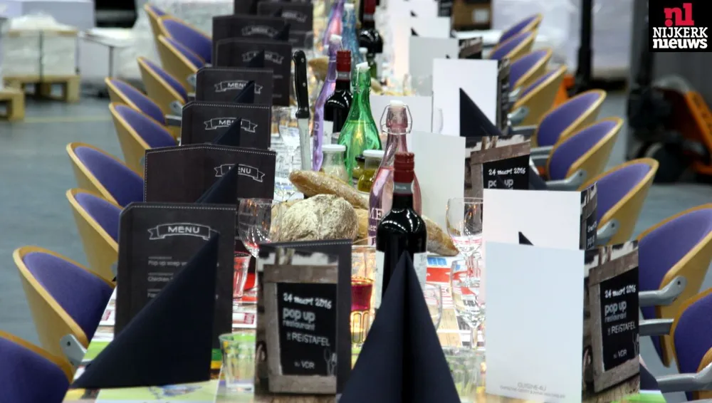 In Amersfoort is het een succes, dus dachten beide kookliefhebbers, dat dat in Nijkerk ook wel zou moeten kunnen: een restaurant inrichten op een plek, waar je dat niet verwacht. Het idee is simpel: de gasten - die zich vooraf hebben aangemeld - krijgen pas een paar uur van tevoren bericht waar ze die avond (of middag) zullen eten. Dasler in het AD: "Ze moeten wel hun eigen bordje en bestek meenemen om de kosten zo laag mogelijk te houden" De eerste avond waren de tafels en stoelen klaar gezet door Van de Ridder Druk en Print. Het idee is om die manier mensen de gelegenheid te geven een inkijkje in een bedrijf, een mooi pand of een opvallende tuin te geven. Oh en het licht werd wel sfeervoller, nadat de foto's gemaakt waren.