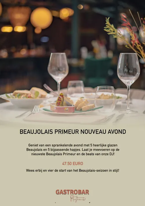 De kaarten kosten € 47,50 per persoon. We schenken Beaujolais met heerlijke happen en live muziek. Reserveer je kaarten. Dat kan bij info@corvinowijnbeleving of de gastrobar Chez Naghmeh. Je bent welkom vanaf 18.00 uur, maar het feest loopt de hele avond door. Met DJ én live muziek.