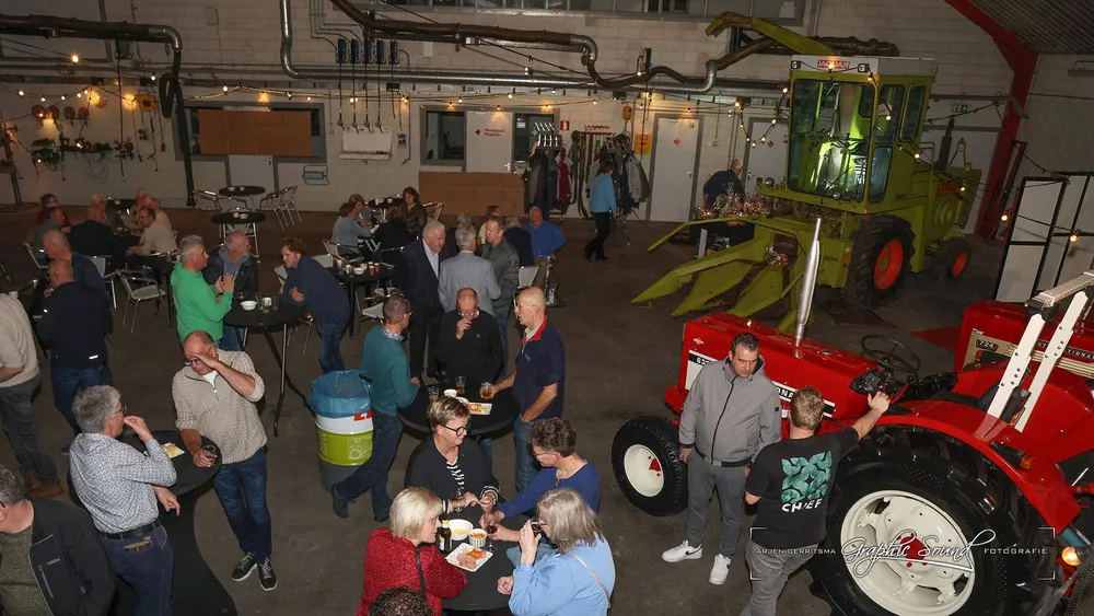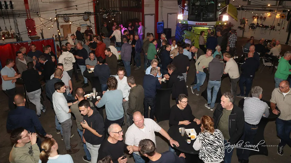 Meerdere klanten hadden hun hakselaar als verrassing meegenomen. Deze stonden in een ereboog opgesteld voor de jubilaris. Rutger van Puurveen is een bekend gezicht in de sector en viert hiermee een zeldzaam jubileum.