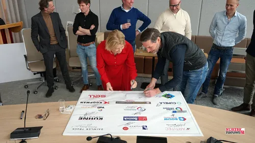 Namens de gemeente zetten de wethouder Klein en Windhouwer hun handtekening.Windhouwer op Linkedin: "Gaaf dat zoveel bedrijven in Nijkerk de handen in een hebben geslagen om te komen tot een Energy Hub op bedrijventerrein Arkervaart/Watergoor. Door samen te werken kunnen ze binnen de grenzen van het energienet door slimme samenwerkingen toch hun toekomst veilig stellen."