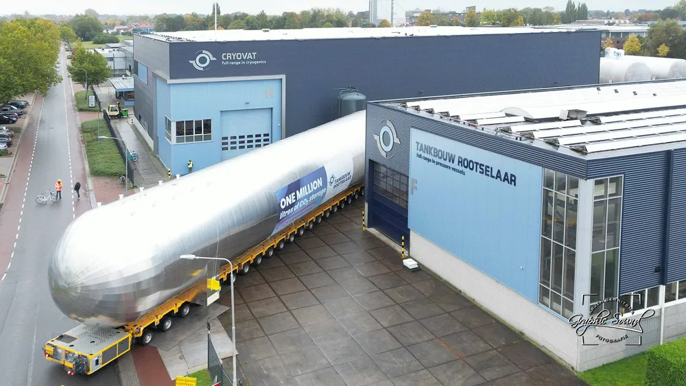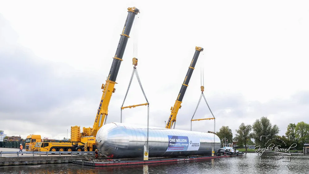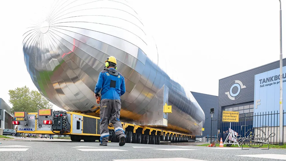 Vandaag zijn twee van de zes tanks voor het Greensand Future-project op transport gezet.
