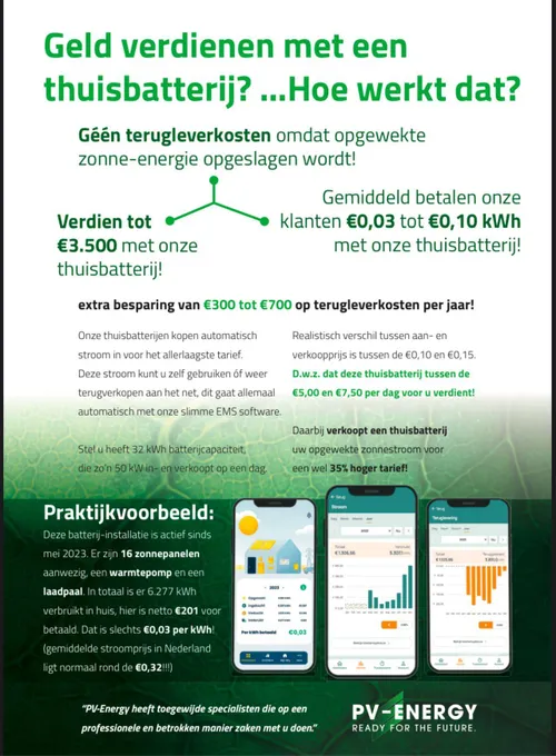- Voorbereiding op afschaffing salderingsregeling: Met de verwachte afschaffing van de salderingsregeling wordt het opslaan van zelf opgewekte energie steeds belangrijker.